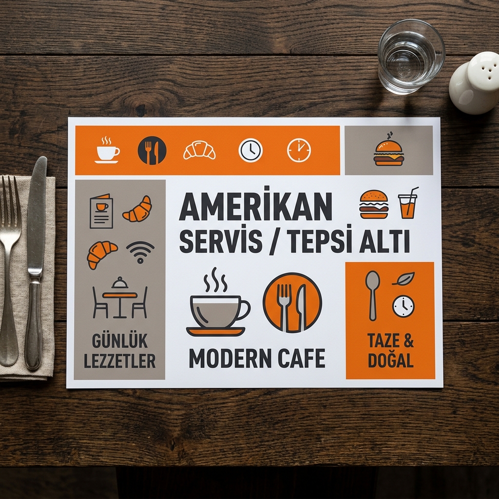 Masaya hem benzersiz bir hız hem de marka bütünlüğü katan yüksek kaliteli tek kullanımlık Amerikan servis kağıtları. Misafirleriniz restoranda siparişini beklerken menünüzü veya kampanyanızı keyifle inceleyerek etkileşimde kalabilir. Etkileyici renk kalitesiyle masalarınızın havasını modernleştirirken leke sorununu tamamen çözer. Özel köşe kesimli tasarımlar veya standart ebatlar yapabilme basım esnekliğine sahibiz. Restoran trafiğinin yoğun olduğu vardiya saatlerinde personelin takdim ve temizleme operasyonunu minimuma indirir.